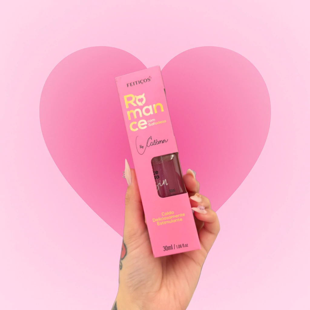 Em parceria com a influencer Calianer Paglia, o Romance com Safadeza está do tamanho da sua vontade, são 30 ml de muita estimulação, com uma embalagem moderna e cheia de brilho, sendo Romântico por fora e Safado por dentro.