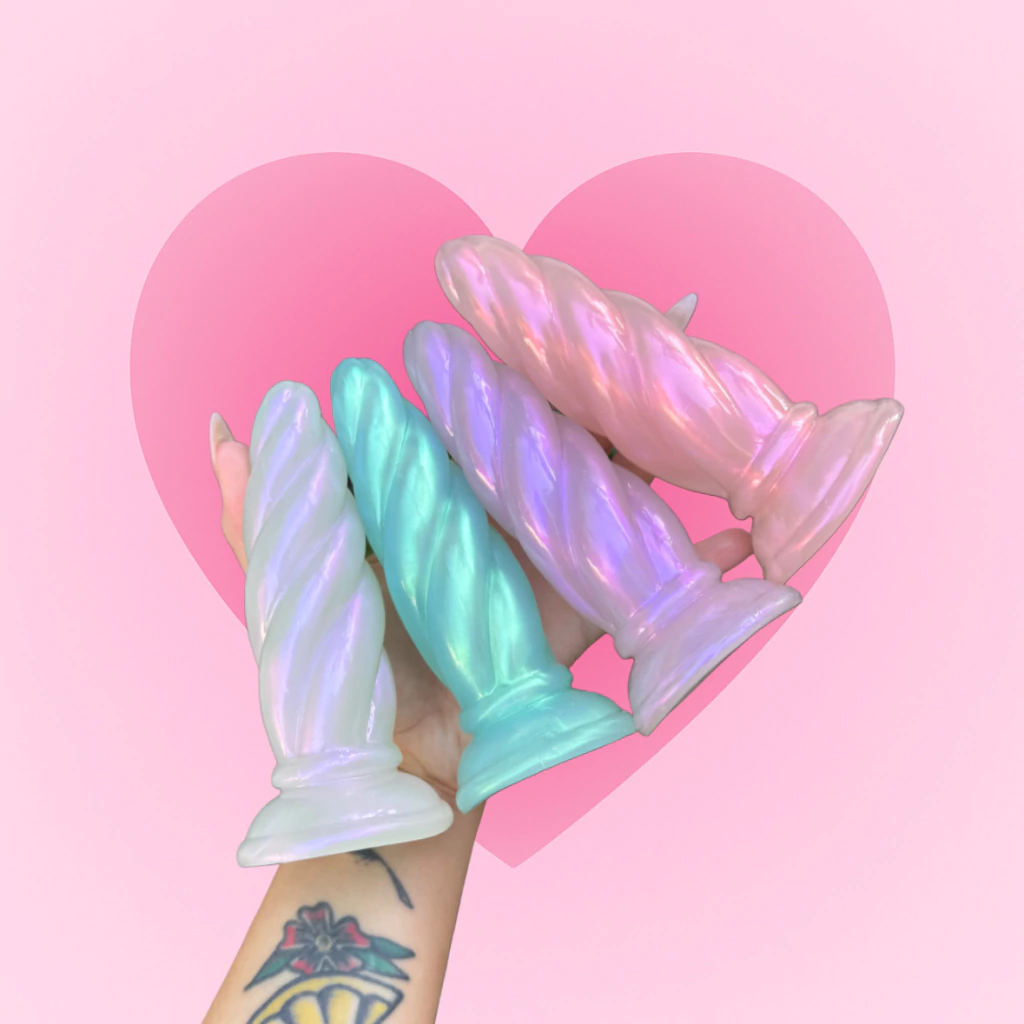 Plug anal feito de um material macio e consistente com base que facilita o manuseio.